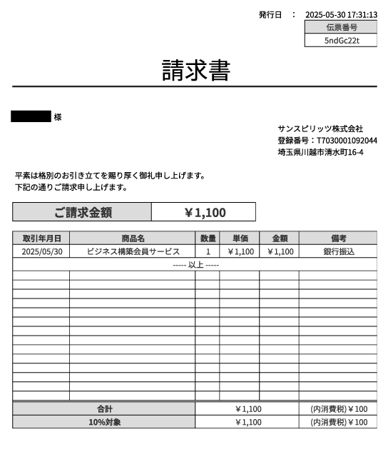 適格請求書等保存方式(インボイス制度)に適応した領収書を、顧客ごとに自動発行することができます。